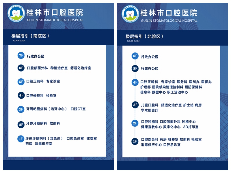 【桂林市口腔医院】二级专科医院,集医疗、教学、科研、预防保健于一体,肩负桂林市口腔疾病防治中心和桂林市牙病防治指导组办公室工作职能。