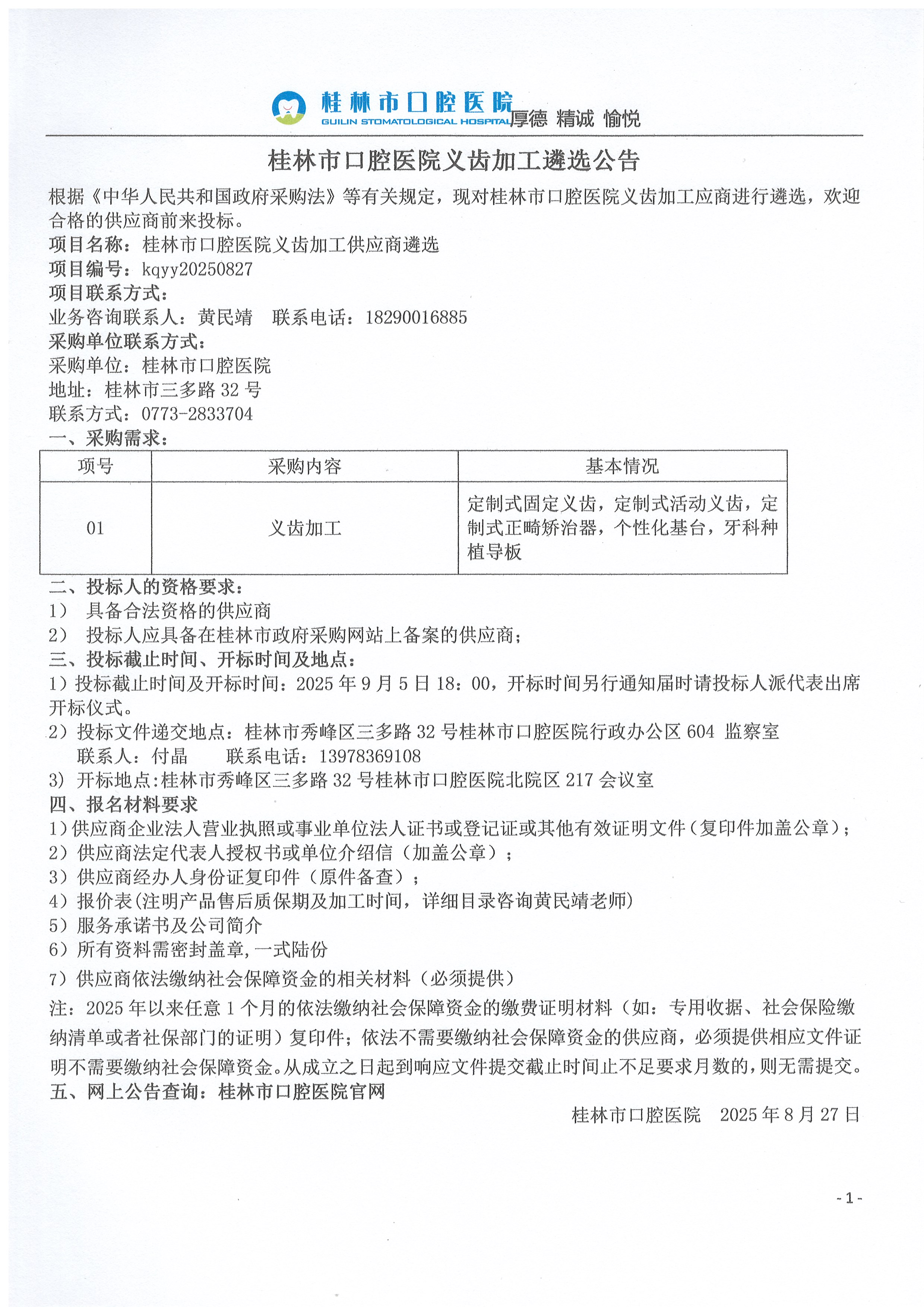 【桂林市口腔医院】二级专科医院,集医疗、教学、科研、预防保健于一体,肩负桂林市口腔疾病防治中心和桂林市牙病防治指导组办公室工作职能。