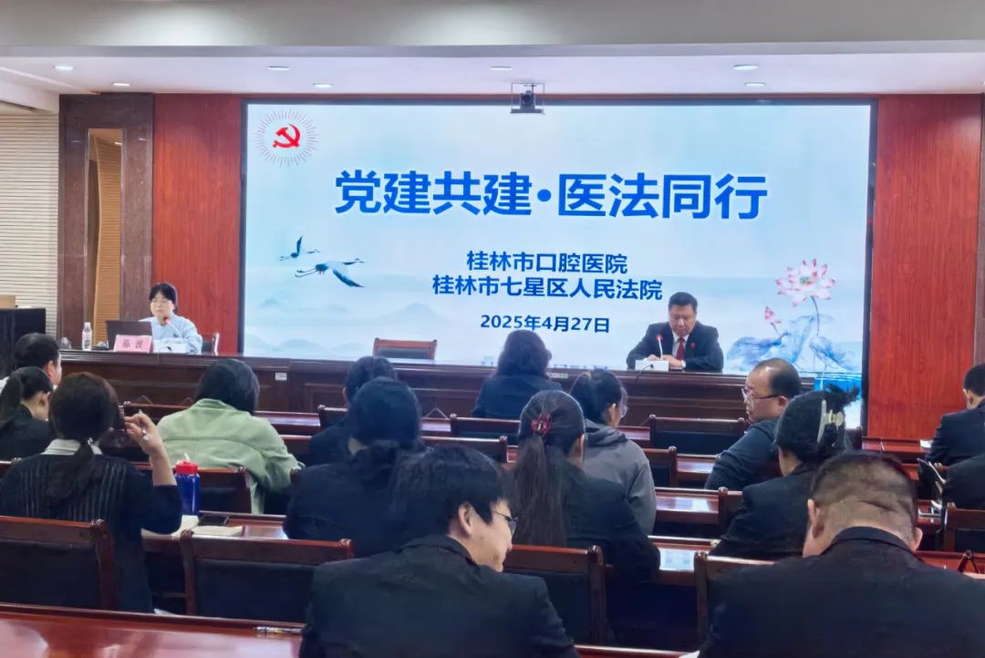 春末的漓江之畔,一场别开生面的“跨界对话”在桂林市七星区人民法院上演。4月27日,桂林市口腔医院的白衣天使们走进庄严的审判大楼,与法院干警共同开启“党建共建2.0”新篇章。这场医法领域的破壁融合,犹如在法治天平上添注人文砝码,在诊疗器械中注入法治温度。