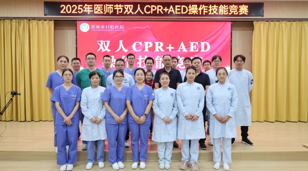 8月8日,桂林市口腔医院成功举办 “2025年双人CPR+AED操作技能竞赛”。各临床科室选派的9组选手同台竞技,以精湛技艺和默契配合展现了“生命守护者”的专业风采。