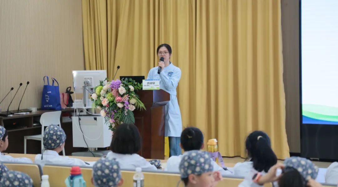牙体牙髓病科唐敏敏医生首先以“白醋泡鸡蛋壳”的科学小实验拉开活动序幕,“白醋遇到鸡蛋壳会发生什么反应呢”,“我们口腔里面藏着哪些奥秘呢”,同学们的好奇心和求知欲瞬间被激发,唐医生用充满童趣的语言生动揭秘了牙齿的结构、作用、龋齿的危害、产生因素、预防措施,错颌畸形的危害,窝沟封闭的作用,牙外伤的应急处理,让同学们的口腔探索之旅加深了对口腔健康的理解和认识。